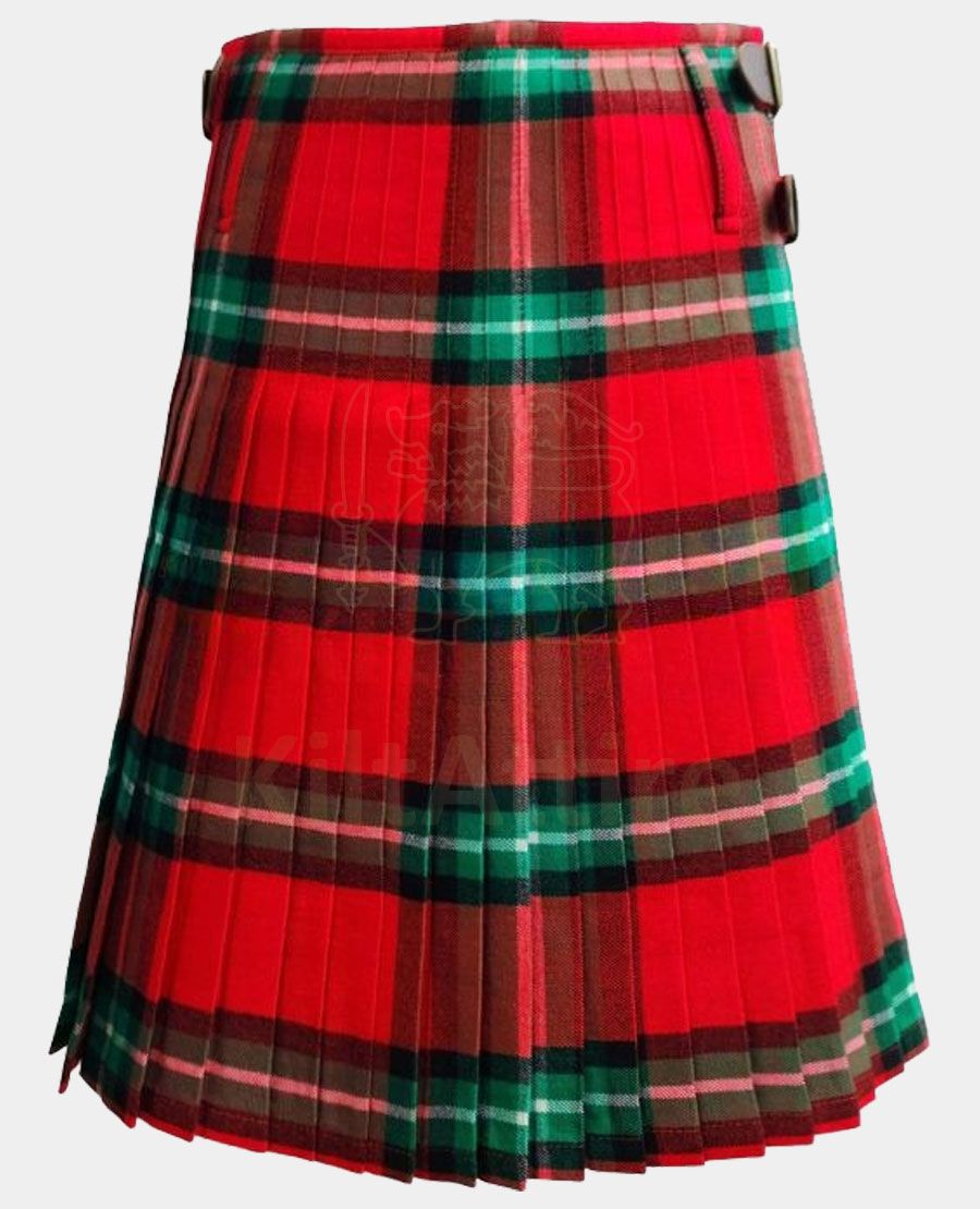 Made from premium acrylic wool, this traditional tartan kilt features genuine leather straps, rust-free buckles, adjustable waist, and knife pleats. It is lined with soft cotton for comfort and boasts convenient belt loops. This traditional kilt is made to a perfect fit, combining tradition and modern functionality.
