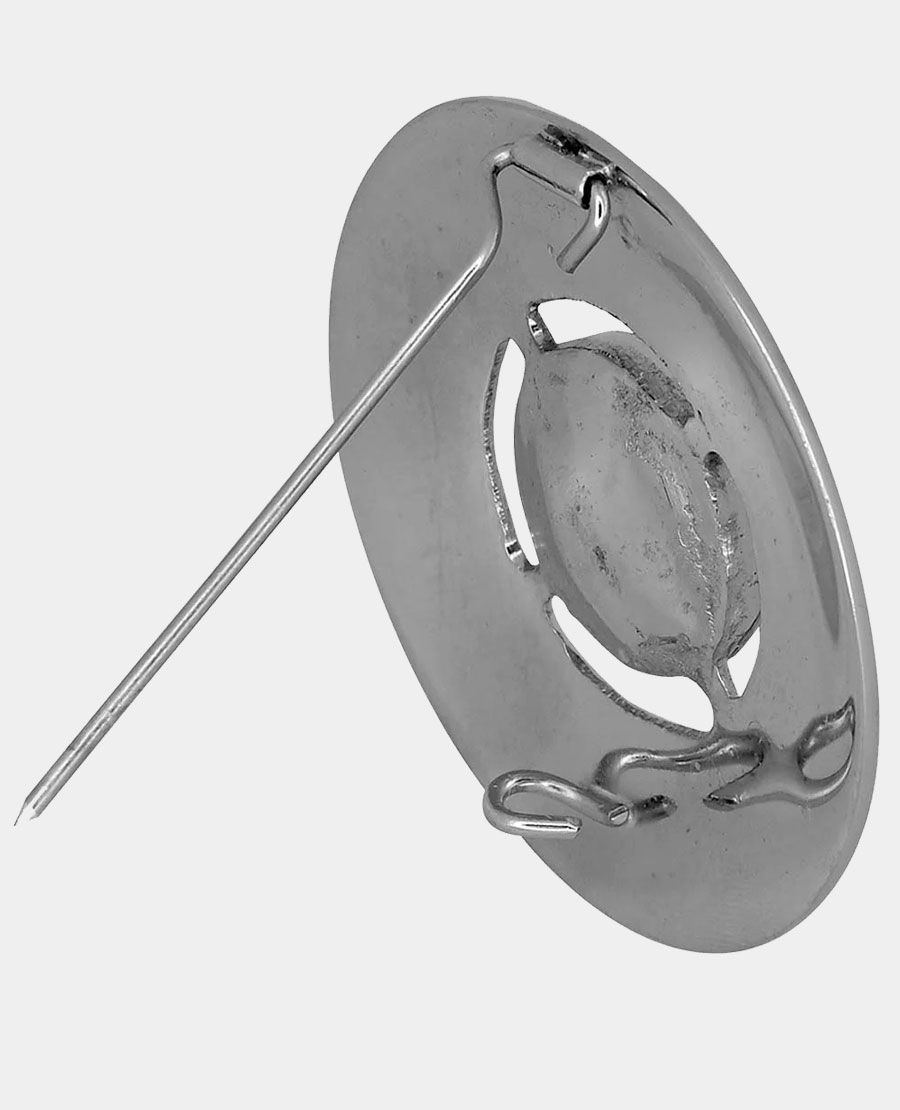 A plaid brooch is an essential element of Scottish highland dress. A plaid brooch is used to keep a Scottish fly plaid in place when it is customarily draped over a man's right shoulder. Fly plaid brooches are typically worn to more formal events such as weddings, funerals, christenings, or graduations. Plaid brooches are commonly available in silver or steel and often feature unique gemstones. Popular designs include Scotland's national flower, the thistle, as well as Celtic knots and crosses that represent deep Scottish traditions.