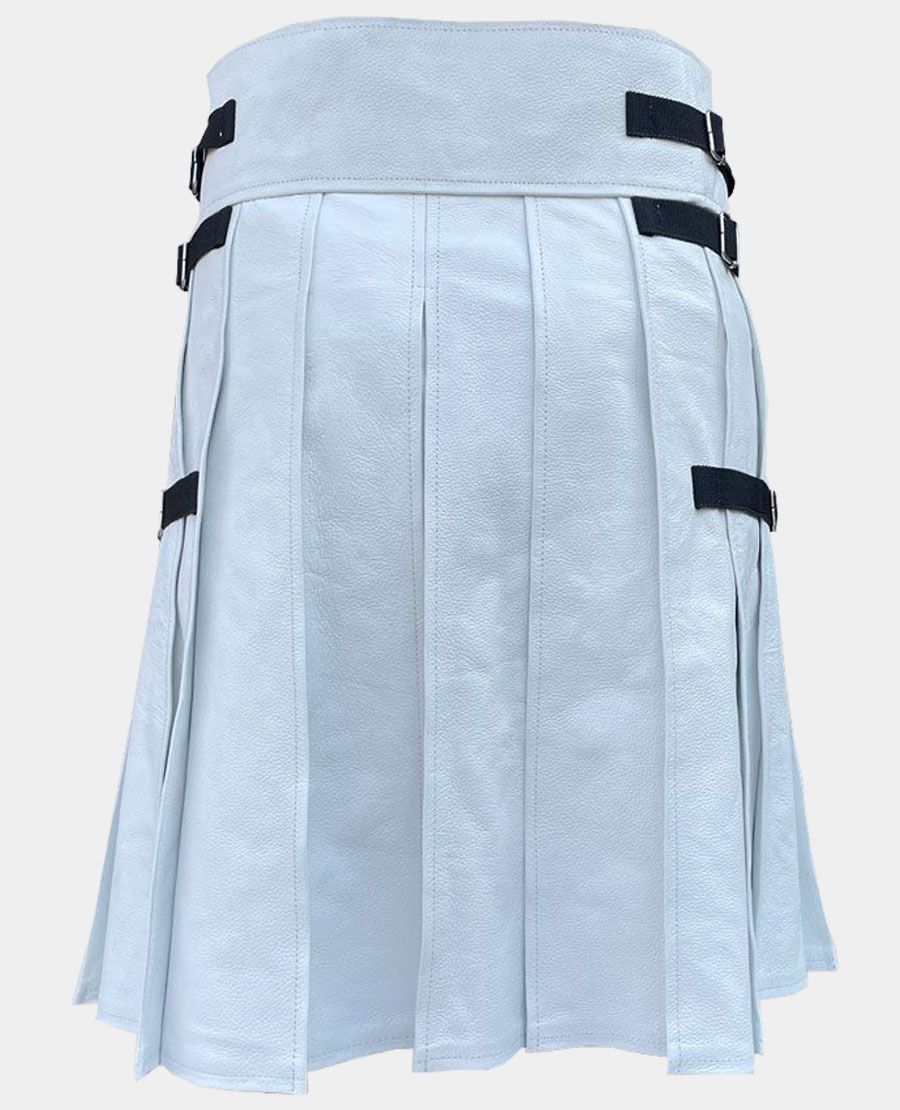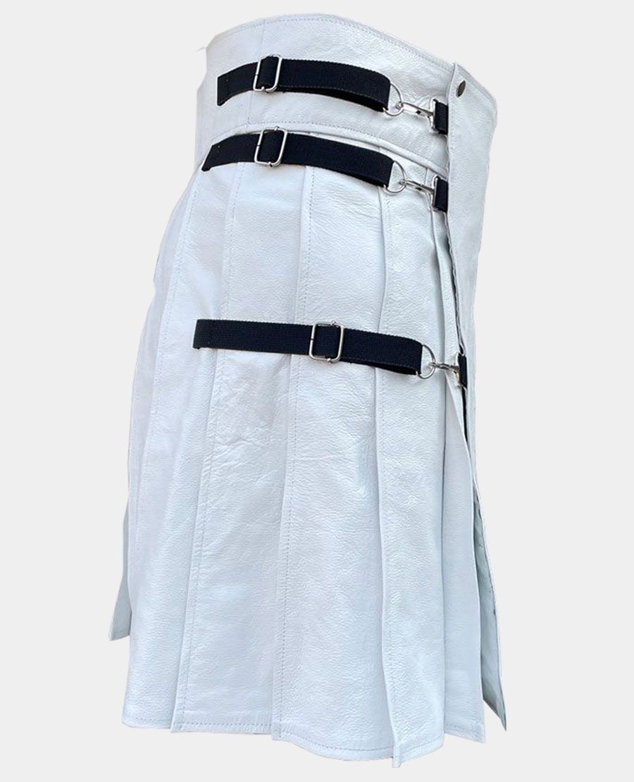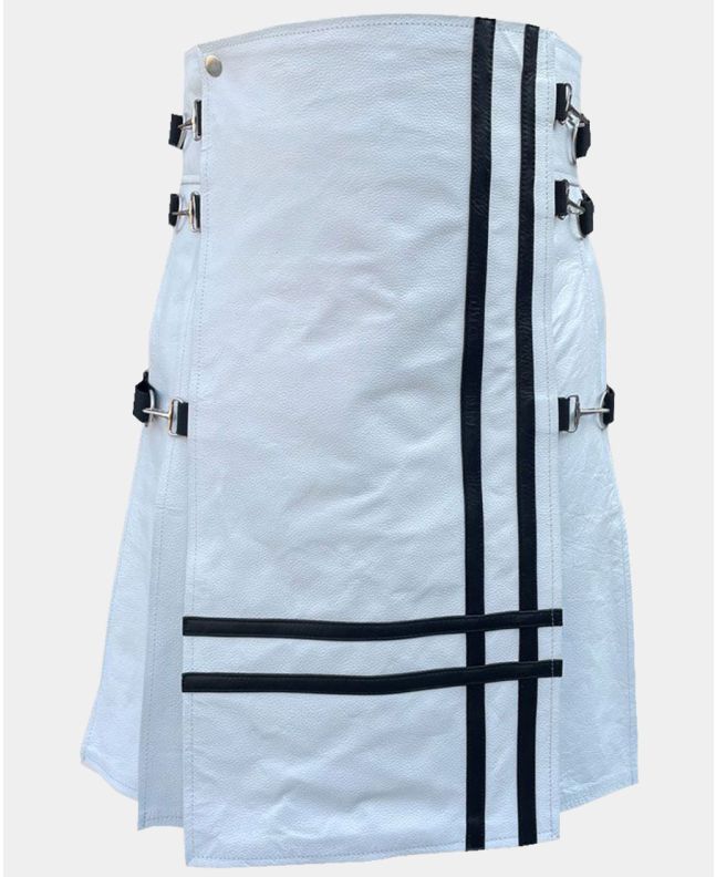 - Brand: This White Front Black Cross Leather Kilt is made by Kilt Attire